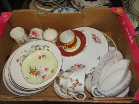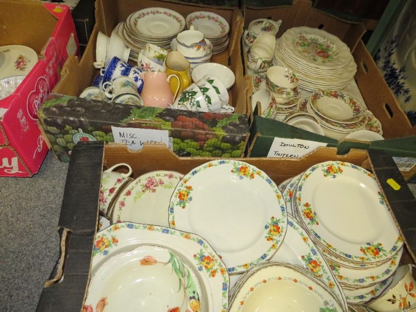 Five trays of assorted ceramics to include vintage tea and dinner ware
