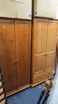 Two double two door solid pine wardrobes