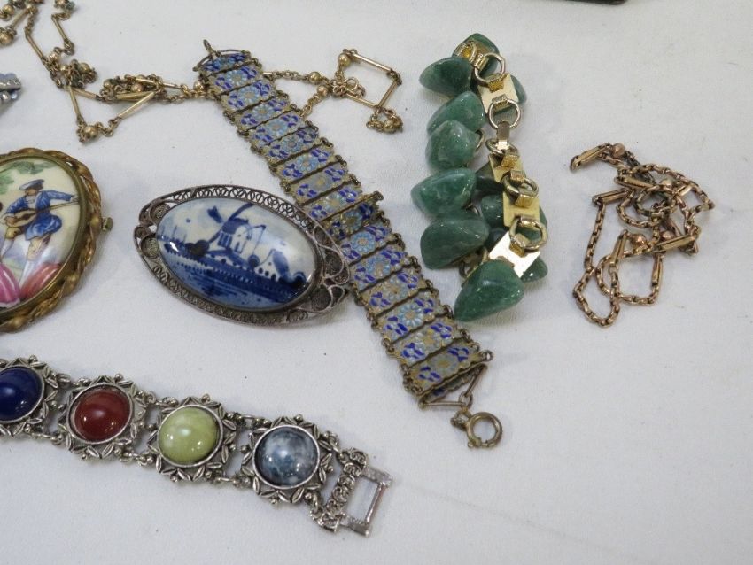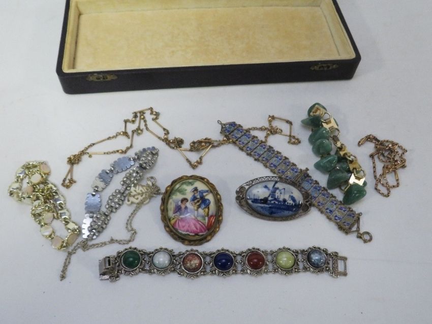A box of assorted costume jewellery to include bracelets, brooches etc
