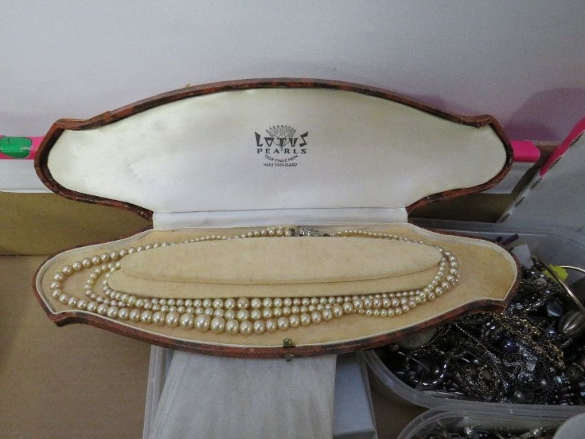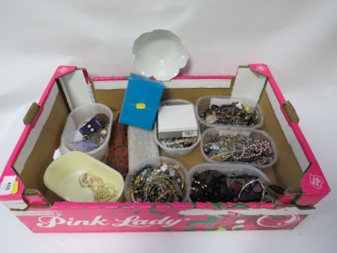 A large tray of assorted costume jewellery etc