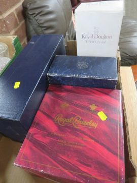 Two trays of assorted crystal glass to include Stuart crystal and Brierley examples