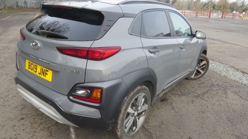 A HYUNDAI KONA PREMIUM SE 5 DOOR HATCHBACK 'BG19 JNF', 1L petrol, manual transmission, approximate mileage 25442, MOT expired 5th March 2026, untaxed, V5 logbook, 2 keys, manuals. NB: this car is from a deceased estate.it currently turns over but there can be no guarantee give as to the working capacity of this vehicle.