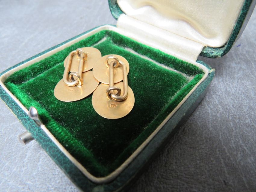 A PAIR OF 18CT GOLD CUFFLINKS, stamped 18 to the reverse of each oval, approximate combined weight 10.5 g