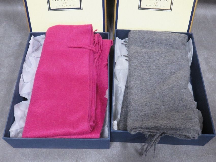 SIX BOXED ASPINAL OF LONDON SILK AND CASHMERE SCARVES