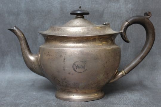 A HALLMARKED SILVER TEAPOT BY JOSEPH GLOSTER LTD - BIRMINGHAM 1958, W 28 cm, approx weight 620g