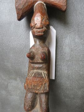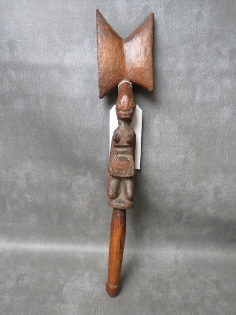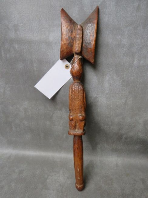 TRIBAL ART - AN EARLY 20TH CENTURY YORUBA SHANGO STAFF, L 51 cm