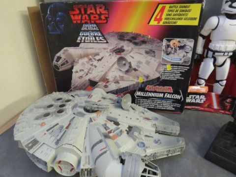 STAR WARS COLLECTION, to include boxed Millennium Falcon, four 18" figures, Darth Vader money box etc.