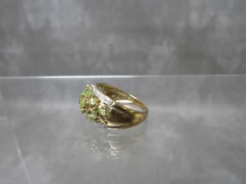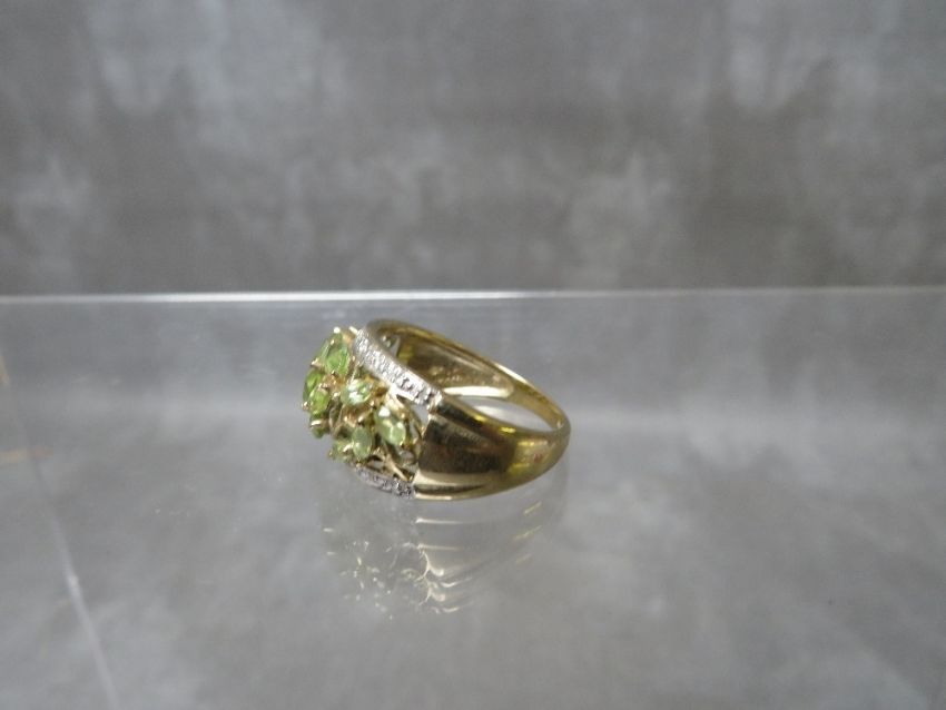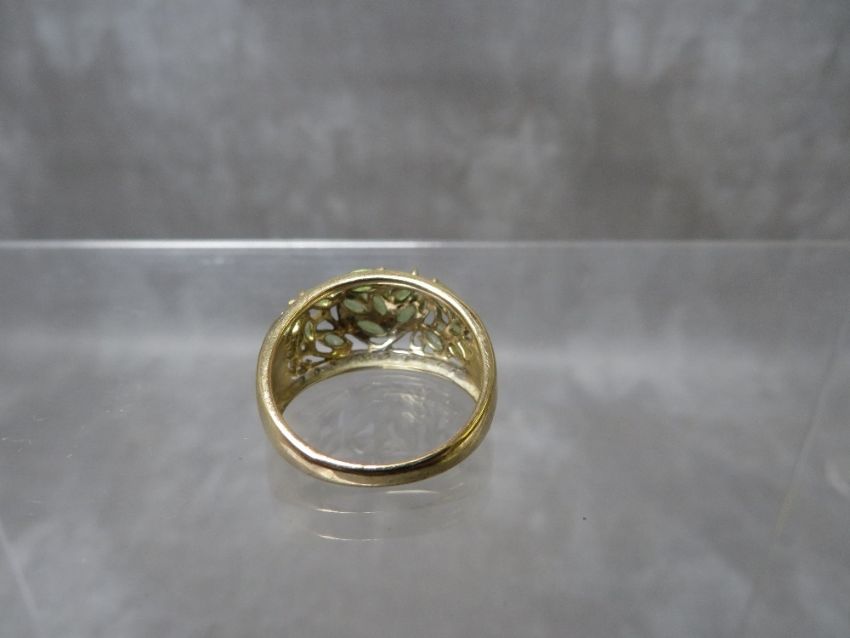 A HALLMARKED 9CT GOLD PERIDOT STYLE GEMSET DRESS RING, ring size R, approximate weight 4.5 g
