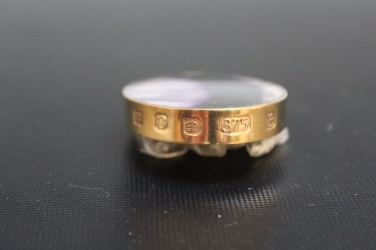 A HALLMARKED 9 CARAT GOLD MOUNTED OVAL PENDANT, with contrasting colours on each side, approx weight 31g, H 5.5 cm W 3.5 cmCondition - On the yellow /orange side there appears to be a vertical crack along half of the stone.