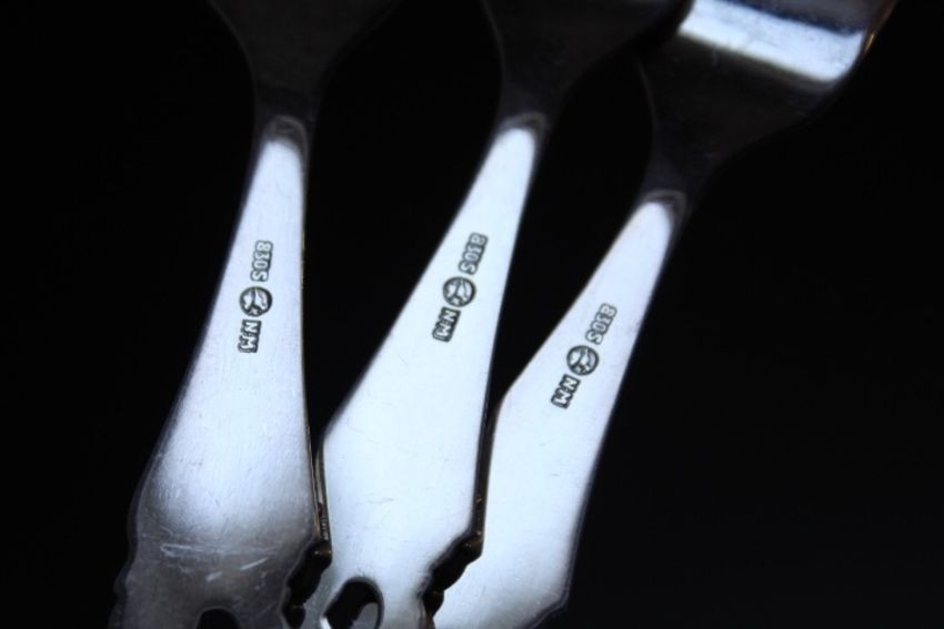 MYLIUS NORWAY -A COLLECTION OF ORNATE SILVER CUTLERY, stamped 830S, approx combined weight 445g, together with a matching silver handled cake slice stamped 838SMN