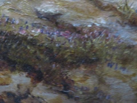 ROBERT EDWIN SINDALL (b.1800). Extensive moorland landscape, with sheep resting by a rocky outcrop, mountains beyond, signed and inscribed on label verso, oil on canvas, framed, 45 x 65 cm