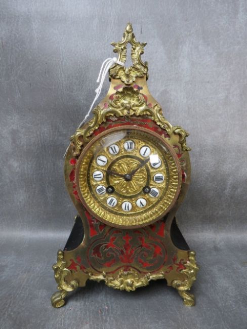 A 19TH CENTURY BOULLE WORK MANTEL CLOCK, H 30 cm, W 16 cm