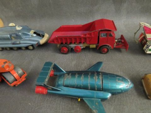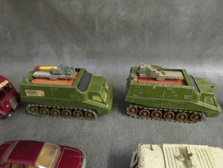 A JOB LOT OF FORTY PLAYWORN DINKY VEHICLES, to include Lady Penelope's Thunderbirds FAB1 car, Joe's car, Chieftain tank, Shado 2, 20 ton crane, horsebox etc.