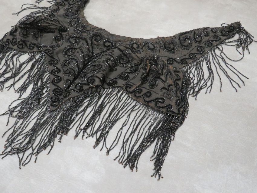 A VICTORIAN BEADWORK CAPE, heavily embellished with beadwork fringe, together with a vintage hat (2)