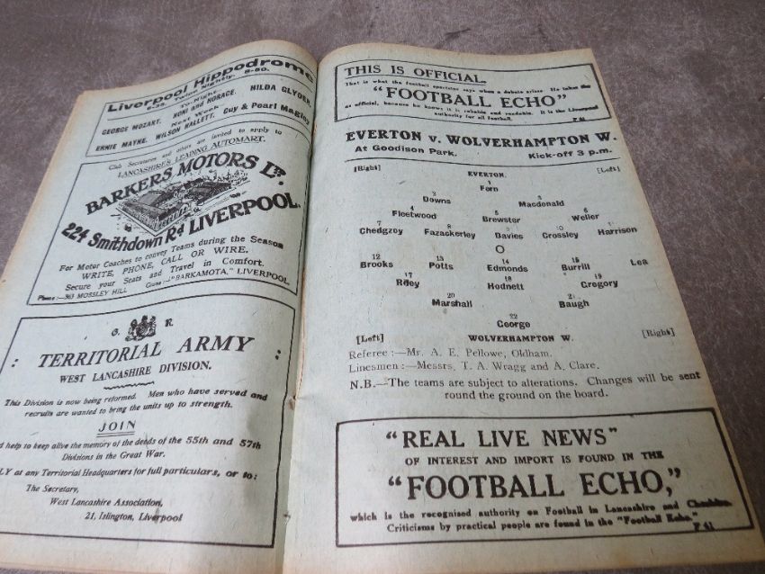 A 5TH MARCH 1920 / 1921 SEASON EVERTON v WOLVERHAMPTON FA CUP TIE FOOTBALL PROGRAMME, Wolves won the game and went onto make the FA cup final , the programme also features Liverpool Reserves v Southport Central