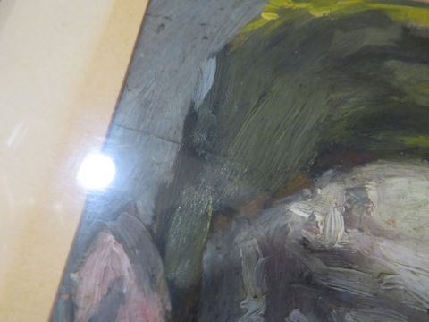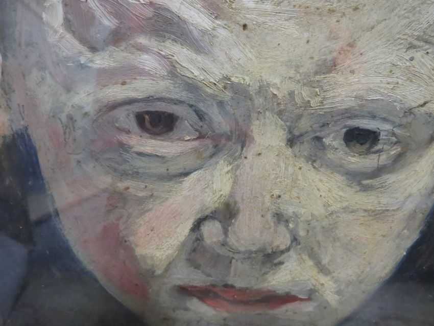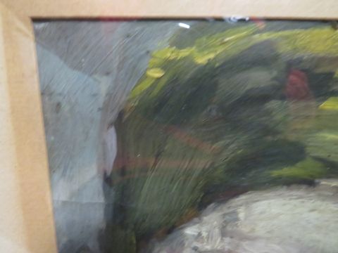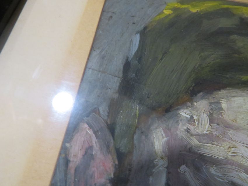ETHEL GABAIN (1883-1950). French / Scottish school, impressionist portrait study of a boy, signed lower right, oil on board, framed and glazed, 29 x 22 cmThere is a tear in the top RH corner in a ‘V’ shape. There looks to be tear / split above his right ear.There is a repair / tear around his left eye with a small area of paint loss.The ‘brown marks’ throughout his face appear to be part of the painting when looking through a loupe.There appears to be an incision in the pair to the side of his right eye (possible initials.Also small paint loss to the lower corner and it looks to has been touched up along with similar touch up marks to the right,Foxing to mount.