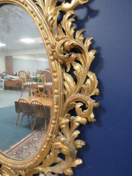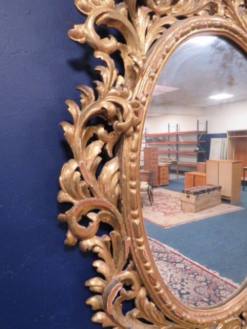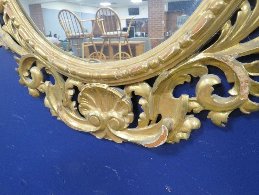 A LARGE CONTEMPORARY LOUIS XVI STYLE GILT WOOD ORNATE WALL MIRROR, of oval form, approximate H 125cm, W 79cm S/D