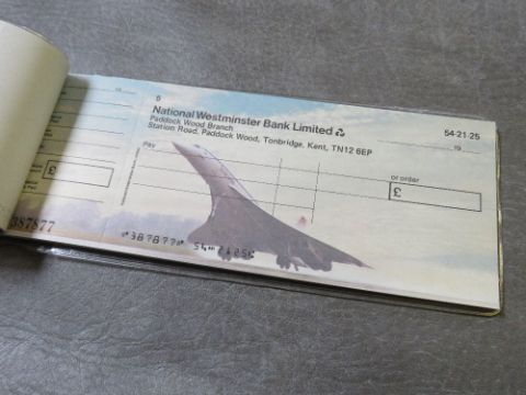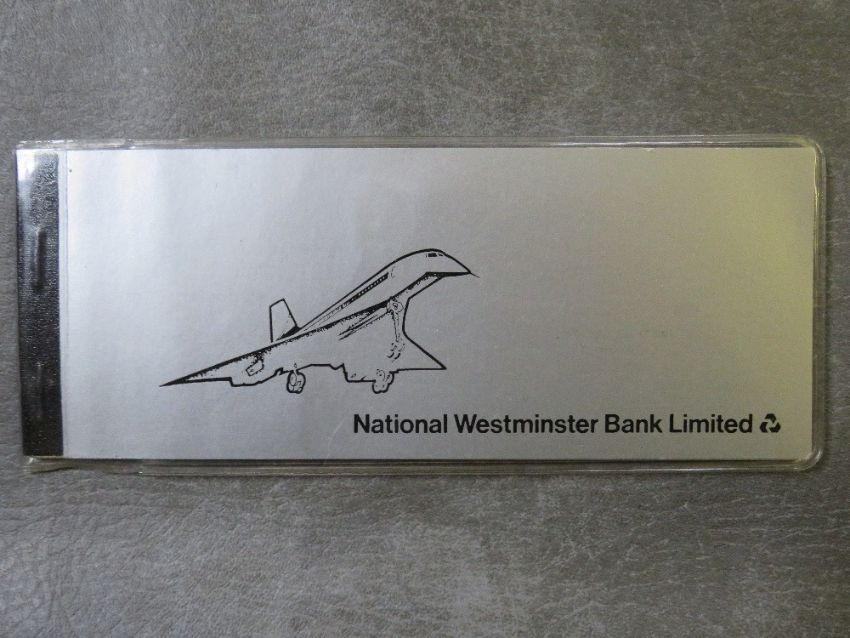AN UNUSUAL VINTAGE 'CONCORDE' THEMED NATIONAL WESTMINSTER BANK CHEQUE BOOK, with varying images throughout the book