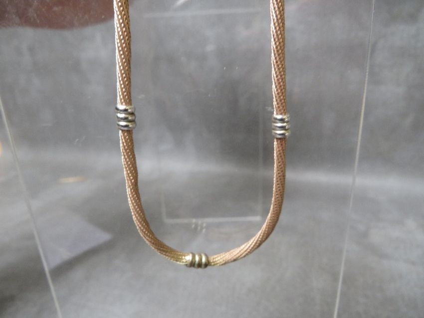 AN UNUSUAL ROPE EFFECT THREE COLOUR NECKLACE STAMPED 375 TO CLASP, approximate weight 9.9 g