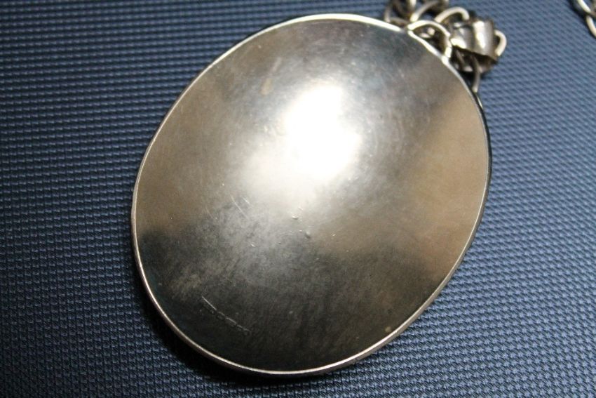 A HALLMARKED 9 CARAT GOLD OVAL PENDANT, on a chain stamped 9ct, approx combined weight 28.9g