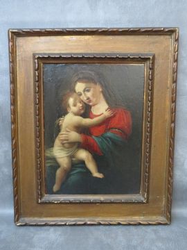 LATE 18TH / EARLY 19TH CENTURY CONTINENTAL SCHOOL, 'Madonna and Child', unsigned, oil on panel framed, 33 x 24 cm