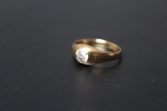 A GENTS STYLE DIAMOND SOLITAIRE RING, having a brilliant cut diamond of an estimated half a carat set in 18ct gold, approximate weight 5.2 g, ring size R ½