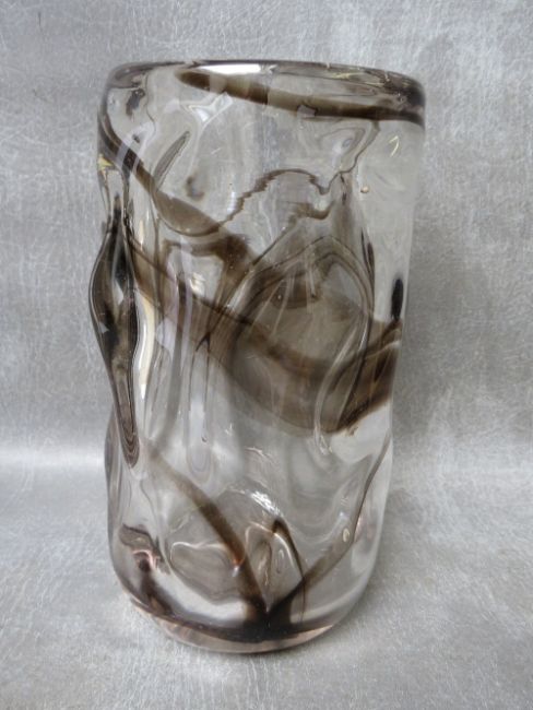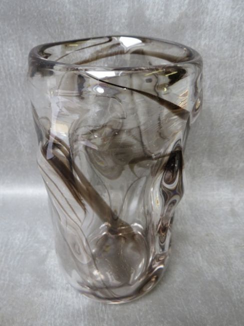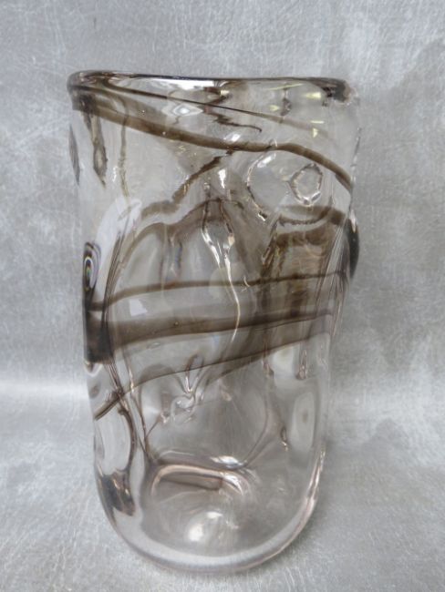 A WHITEFRIARS MID CENTURY STREAKY / KNOBBLY GLASS VASE, H 22 cm, Dia. 12 cmCondition - A few small air bubbles within the glass body of the vase, glass clear no clouding or crazing. No obvious scratches chips or damage.