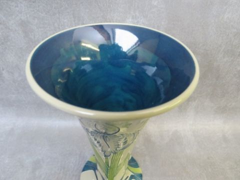 A MOORCROFT 'GREEN IRIS' PATTERN SLENDER TRUMPET VASE, dated 2013, impressed marks to base, H 21 cm