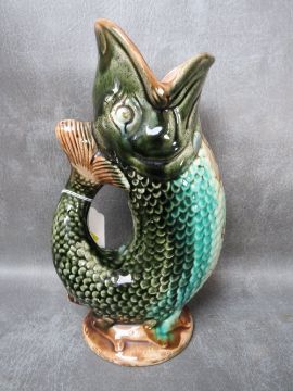 A 19TH CENTURY MAJOLICA FISH PITCHER, H 26 cm