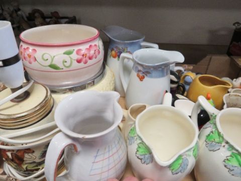 Three trays of assorted ceramics to include figures