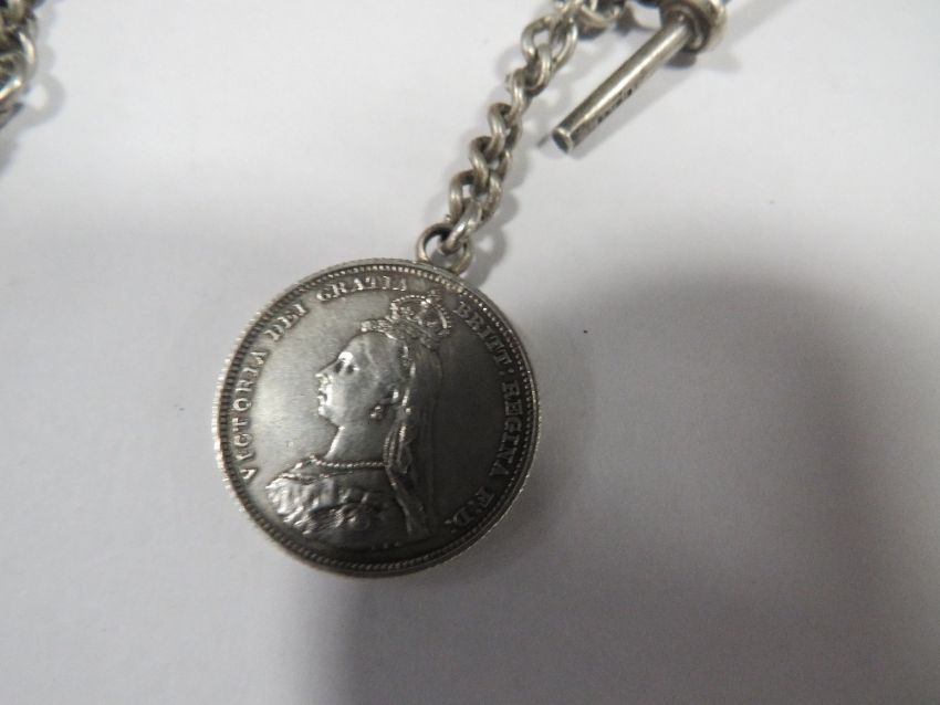 An antique hallmarked silver pocket watch albert chain