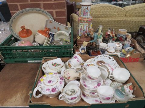 Three trays of assorted ceramics to include a Paragon Nocturne part tea set, Oriental vase etc
