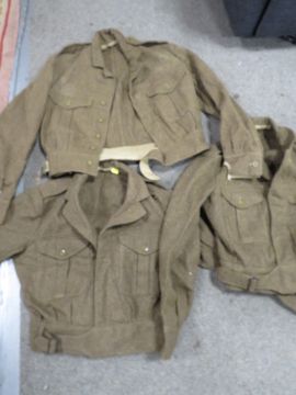 Three items of military uniform comprising 3 x 49 Patt BD blouse size 11 dated 1954