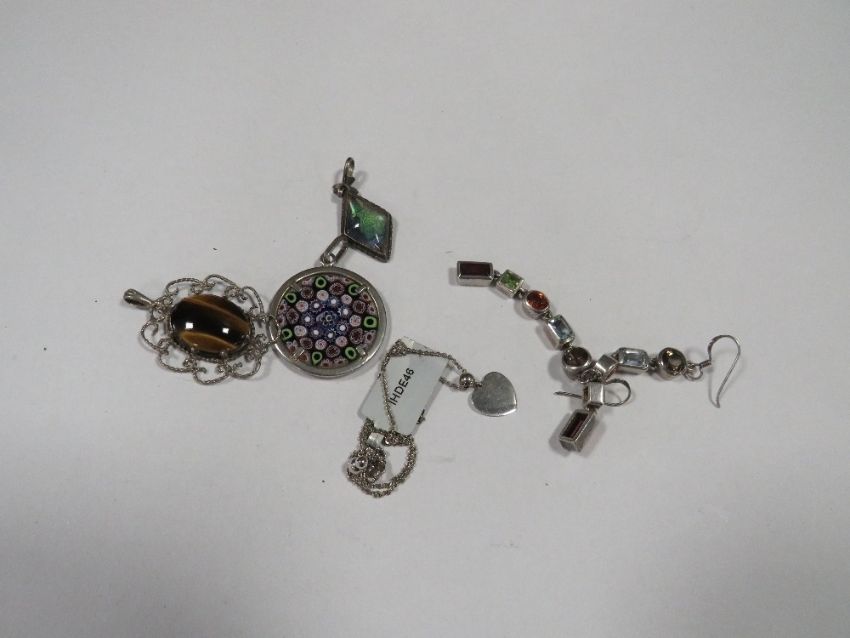 A quantity of silver and white metal jewellery to include a butterfly wing pendant