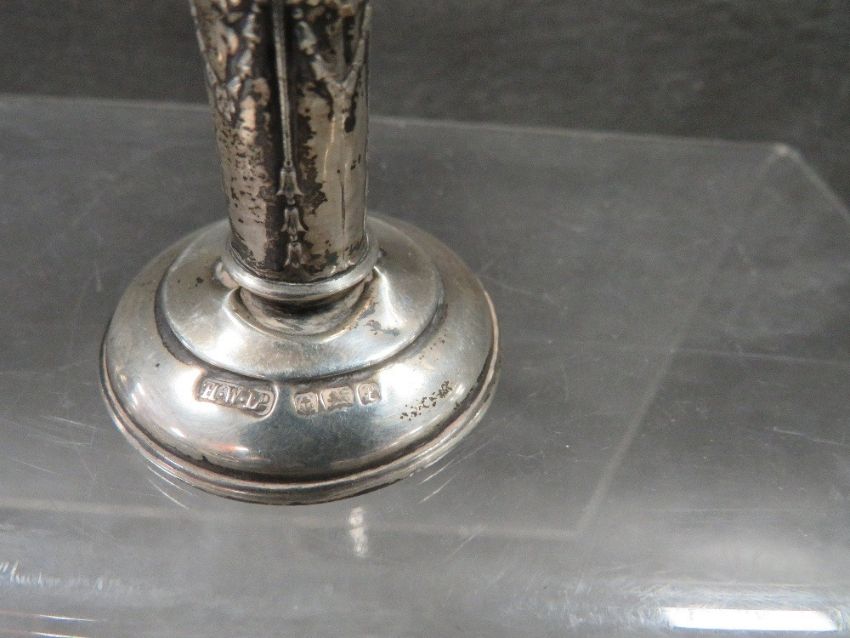 A pair of miniature hallmarked silver Edwardian style candlesticks