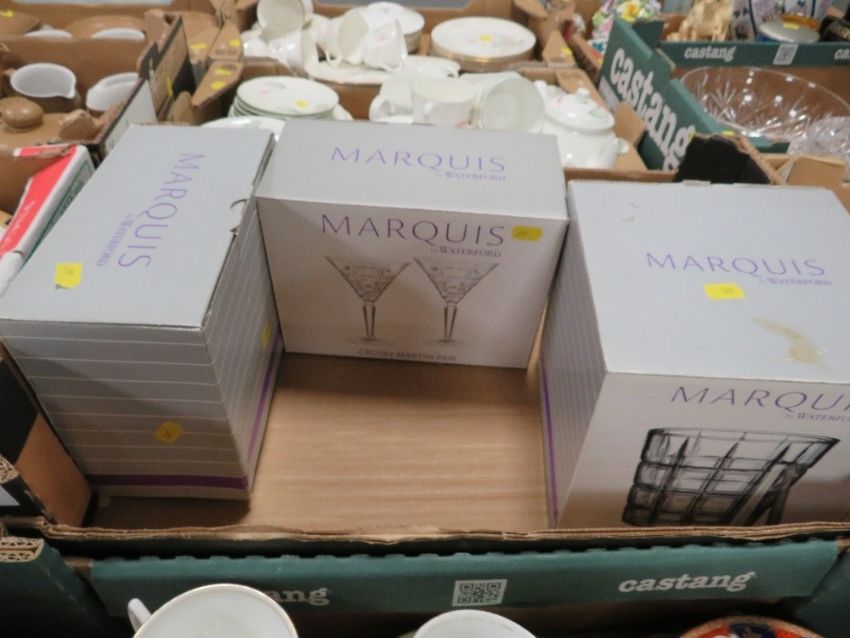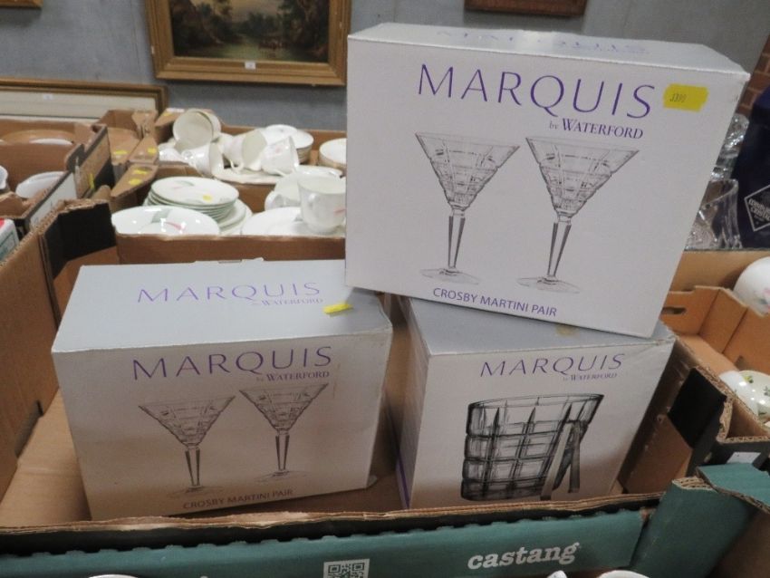 A collection of Waterford Marquis glassware to include four Martini glasses, ice bucket and tongs
