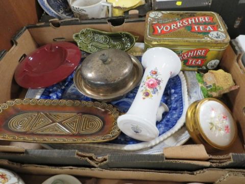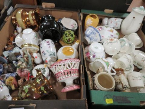 Four trays of mixed collectables to include Crown Devon, Delft, Royal Albert, Wade, Aynsley, Wedgwood etc
