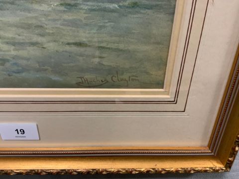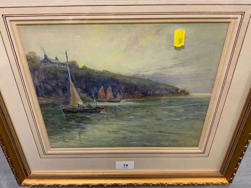 J Hughes Clayton - a framed and glazed watercolour depicting sailing boats 24 x 28.5 cm