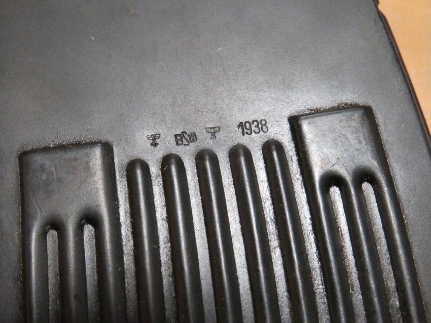 Two WWS German BSW MG13 machine gun magazines dated 1938 and stamped with eagle insignia etc.